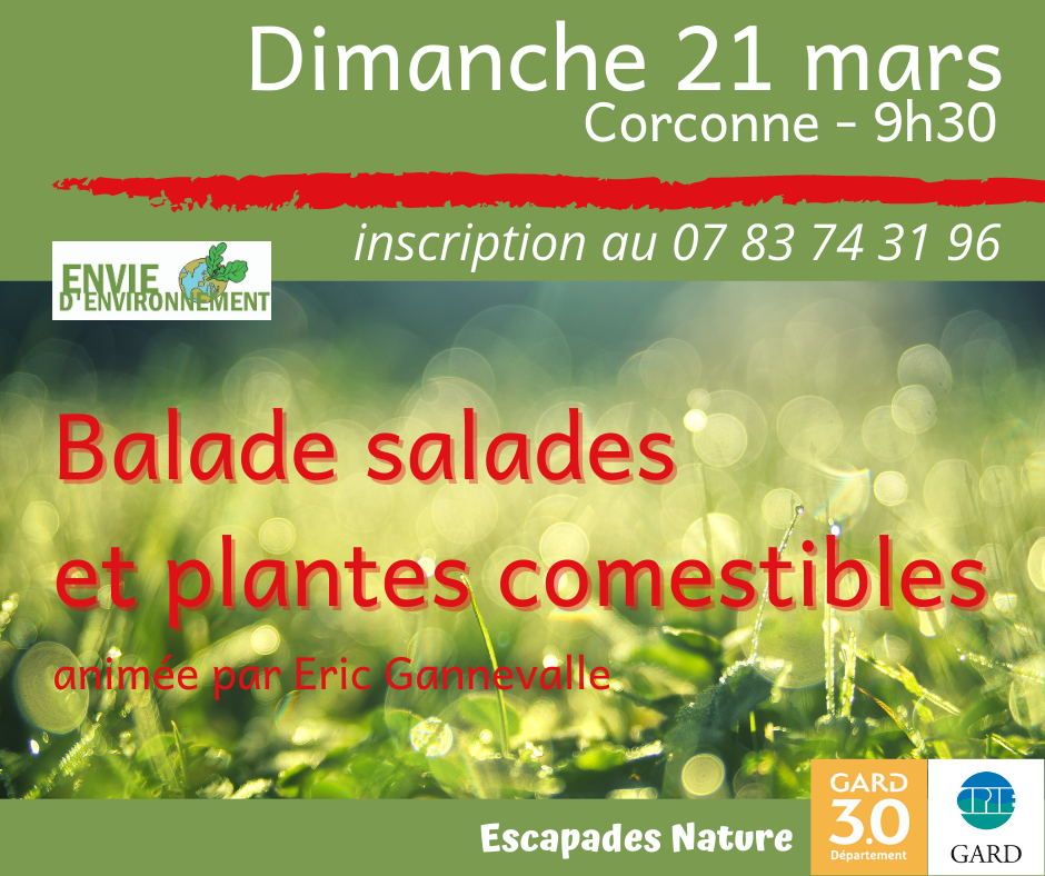 COMPLET ! Une sortie à Corconne avec Eric Gannevalle (agronome et ethnobotaniste) , pour découvrir la diversité des salades et plantes comestibles. Apprendre les bases d'identification. Comment les déguster ? (pas de cueillette massive pour la préservation du site)